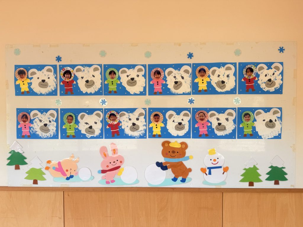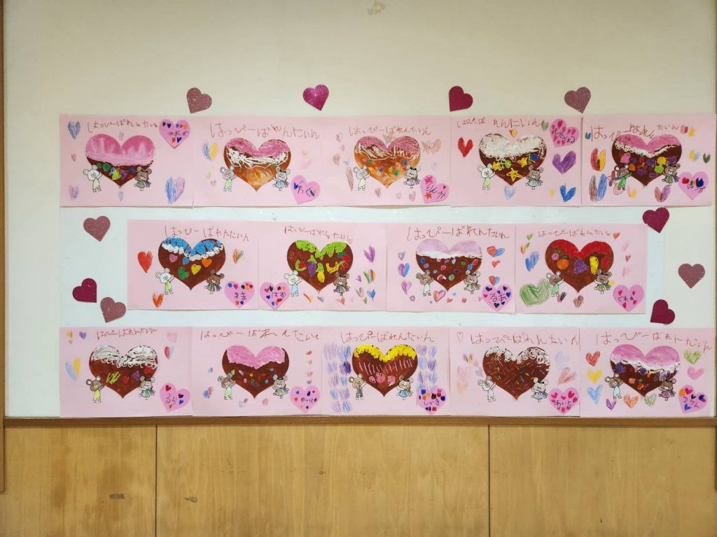 ⛄️2月壁面⛄️ 今月も可愛い壁面ができたので紹介したいと思います🥺✨ まずはつくし組です❣️ 雪だるまとしろくまくんのパンツの製作です🐻❄️ 次はたんぽぽ組です❣️ しろくまさんの製作です🐻❄️ 次はちゅうりっぷ組です❣️ ばけたくんのバレンタインの作品です💘 次はゆり組です❣️ 雪だるまさんの製作です⛄️ 次はすみれ組です❣️ 温泉の製作です♨️ 最後はひまわり組です❣️ バレンタインの作品です💓 今回も可愛い作品ができました👏✨ 関連記事 ひまわりクッキング🍪クッキー作り 今日はクッキングでクッキー作りをしました🥣 まず最初に給食先生のお話をしっかり聞いて作り方を教えもらいその後自分たちでやってみました👩🍳 小麦粉と砂糖を袋に入れたあとよく振ってその後にマーガリンを袋にいれよく揉みます💪 […] 公開済み: 2025年6月18日更新: 2025年6月28日作成者: kouzakiadminカテゴリー: ブログ 避難訓練(地震) 今日は避難訓練があり、地震の時の訓練をしてます💁♀️✨ 地震の揺れがおさまるまで、周りにないとない広い所に先生たちと頭を隠して身を守ったりしてます😊 揺れがおさまった後は外へ避難し、先生の話を聞いていた子どもたち😌 […] 公開済み: 2025年11月5日更新: 2025年11月14日作成者: kouzakiadminカテゴリー: ブログ 🍁11月 製作🍁 今月の各クラスの壁面を紹介したいと思います🥺✨ まずはつくし組です♪ 次はたんぽぽ組です♪ 次はちゅうりっぷ組です♪ 次はゆり組です♪ 次はすみれ組です♪ 最後はひまわり組です♪ 今月も秋らしい壁面が完成してます💓✨ 公開済み: 2025年11月1日更新: 2025年11月8日作成者: kouzakiadminカテゴリー: ブログ