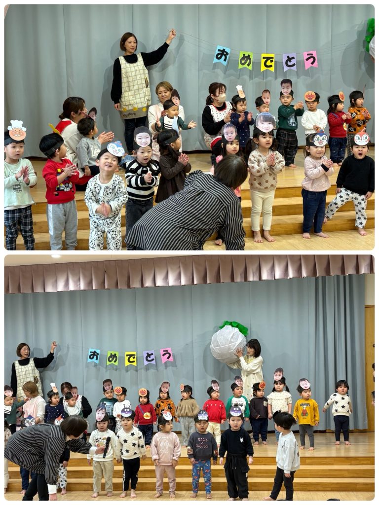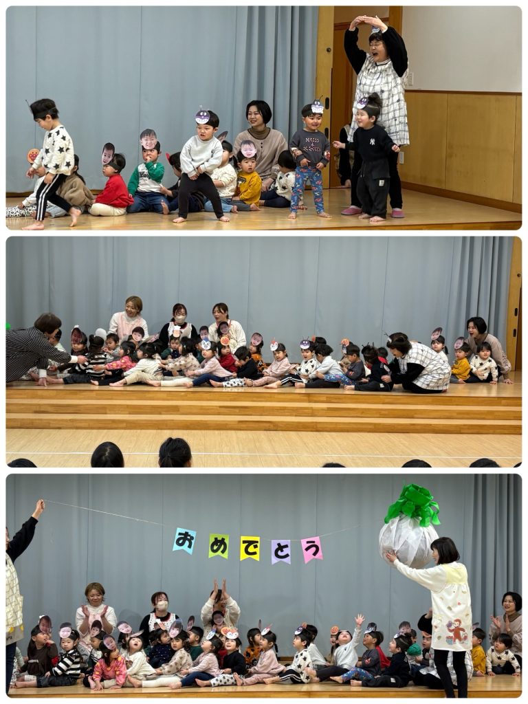 最初は未満児クラスのお友だちによる出し物『おおきなかぶ』でした。