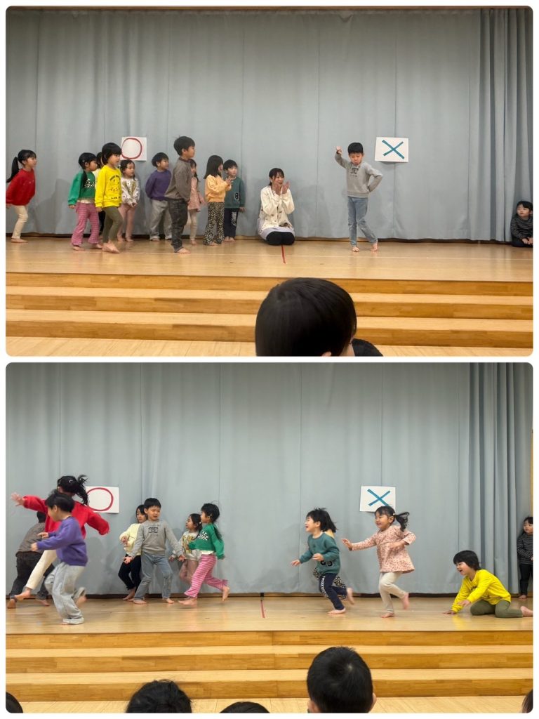 その後、みんなでゲームを楽しみました。マルバツゲームや旗揚げゲーム、コップタワーゲームに挑戦し、友だちと力を合わせながら盛り上がっていました!