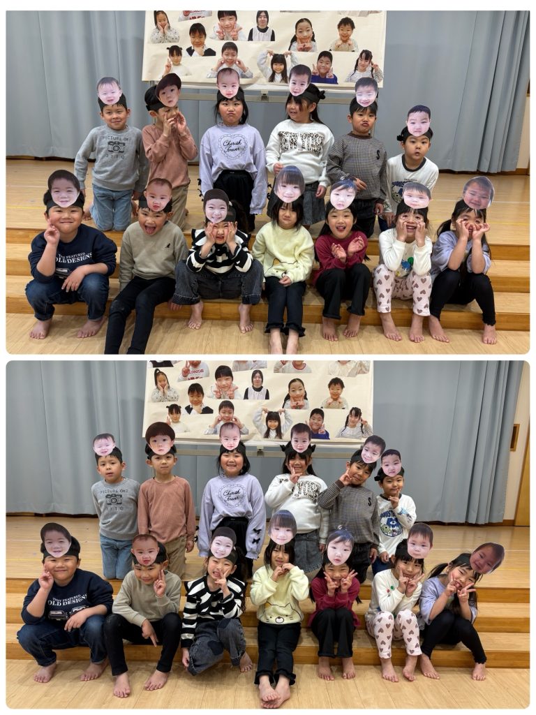 最後は、ひまわり組のお友だちが小さい頃の写真のお面をつけて写真撮影をしました📸