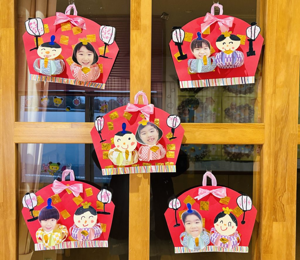 ひな祭り🎎 3月3日はひなまつりです✨ 可愛い雛人形が出来たので紹介しますね! つくし組 たんぽぽ組 ちゅうりっぷ組 ゆり組 すみれ組 ひまわり組 可愛い作品ができました😌❣️ 関連記事 書きかた教室 ひまわり組 今年度から書きかた教室を始めました😌 すみれ組、ひまわり組のクラスが対象として教室が開かれてます🎶 今日はひまわり組さんが初めて受けている様子をお届けしたいとおもいます! 子どもたちはゆき先生の話を集中して聞いてました🎶 […] 公開済み: 2024年4月9日更新: 2024年6月3日作成者: kouzakiadminカテゴリー: ブログ 4月 壁面 新年度になり早くも半月が過ぎました☺️ 今日は各クラスの壁面を紹介します🐣🌸 つくし組 たんぽぽ組 ちゅうりっぷ組 ゆり組 すみれ組 ひまわり組 どのクラスも春らしい素敵な壁面ですね☺️🌸 公開済み: 2024年4月19日更新: 2024年4月19日作成者: kouzakiadminカテゴリー: ブログ ⛄️2月 製作⛄️ 今月も各クラスの壁面を紹介します🥺 まずはつくし組のさるとの温泉です♨️ 次はたんぽぽ組の手袋です⛄️ ちゅうりっぷ組はくまさんのバレンタインです💘 ゆり組はバレンタインクッキング👩🍳です✨ すみれ組はおでん屋さんです […] 公開済み: 2025年2月1日更新: 2025年2月27日作成者: kouzakiadminカテゴリー: ブログ