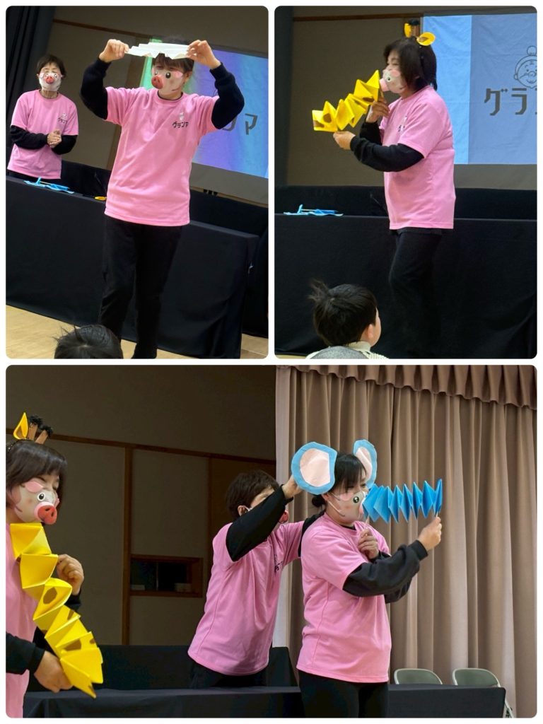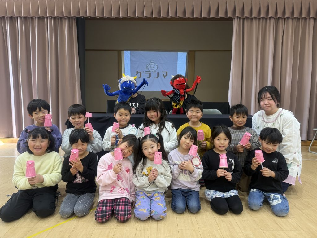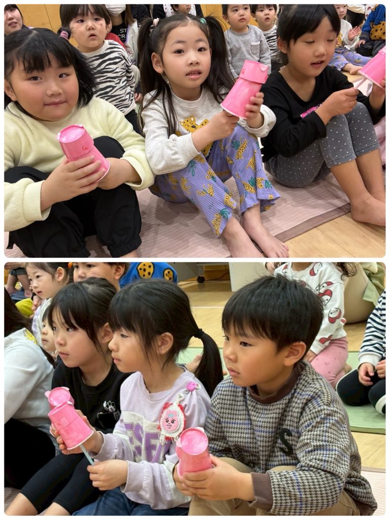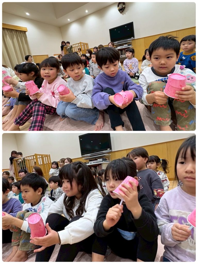 グランマ来園 今日はグランマさんが来てくれて、合奏やカップスや人形劇などと楽しいお話がたくさんありました😆❣️ 子供たちは大喜びでマネをしたりと一人一人が楽しんでました💓 ひまわりさんは合唱の時、グランマさんと一緒に手作りの豚の紙コップをもって合唱に参加してました❣️ 子供たちにとって楽しい時間を過ごすことができてました❤️ グランマの皆さま、ありがとうございました☆ 関連記事 避難訓練(地震) 今日は避難訓練があり、地震の時の訓練をしてます💁♀️✨ 地震の揺れがおさまるまで、周りにないとない広い所に先生たちと頭を隠して身を守ったりしてます😊 揺れがおさまった後は外へ避難し、先生の話を聞いていた子どもたち😌 […] 公開済み: 2025年11月5日更新: 2025年11月14日作成者: kouzakiadminカテゴリー: ブログ プール開き 今日は、ゆり、すみれ、ひまわり組のお友達でプール開きをしました✨️ みんなが安心安全に事故や怪我がないよう 園長先生がお話をしてくれました😊 園長先生の話をしっかり聞いて、プールやどろんこを楽しみにしている子どもたちです […] 公開済み: 2025年7月9日更新: 2025年7月11日作成者: kouzakiadminカテゴリー: ブログ 🎍𝗛𝗮𝗽𝗽𝘆 𝗡𝗲𝘄 𝗬𝗲𝗮𝗿🎍 今月はゆり組さんの様子を伝えていこうとおもいます🎶 今回は、お正月の遊びを楽しみました🎶 突然ですがお正月の遊び、福笑いの意味をしっていますか? 「笑う門には福が来る」のように、でき上がった顔の面白さから笑顔になれるため […] 公開済み: 2025年1月20日更新: 2025年1月23日作成者: kouzakiadminカテゴリー: ブログ