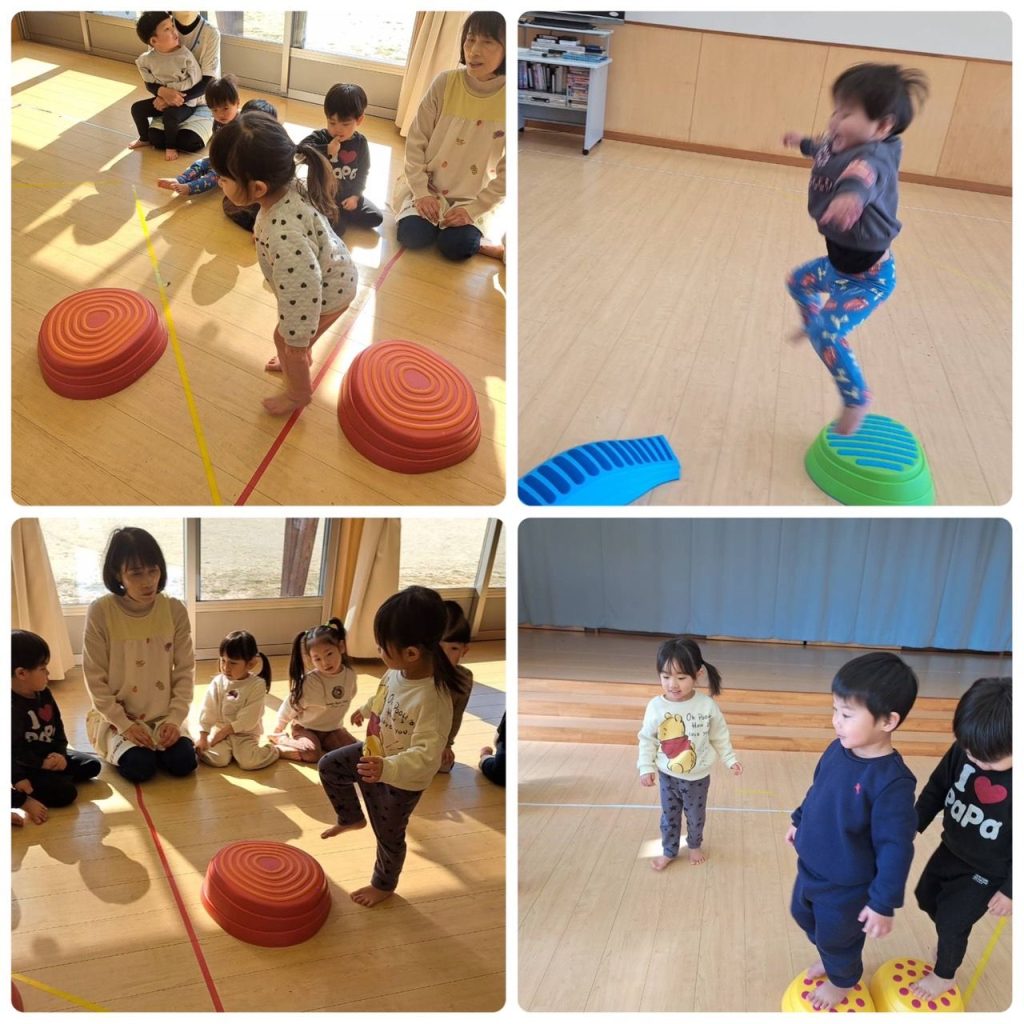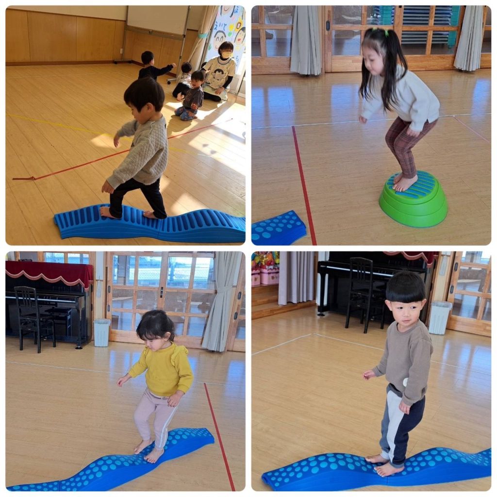 順番に並んですることを伝え約束を守りながらウィプレイを使ってジャンプしたり、でこぼこ道を歩いてみたり楽しく遊んでいます🎵