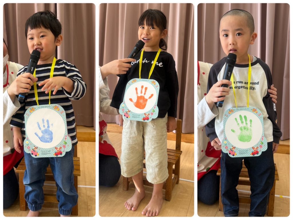 お誕生日の質問コーナーでは緊張しながらも保育士やお友達の質問にしっかり答える姿がみられましたよ☺️