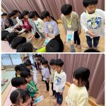 2月3日に節分会がありました。 今日は何の日でしょう?と聞くとみんなワクワクした表情で「節分!」とこたえてくれる姿がありました☺️ 節分会では各クラス作った鬼のお面や豆入れを紹介しました。 「切るところが難しかった」や「 […]