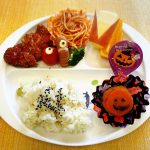 今月、31日はハロウィンです✨ 日頃、怖がりな子供達も大盛り上がりだと思います❣️ 誕生会ではカボチャきんとんもハロウィン仕様です!ウインナーや、ミニトマトの一つ目お化け達もハロウィンを楽しんでいる事でしょう🥰